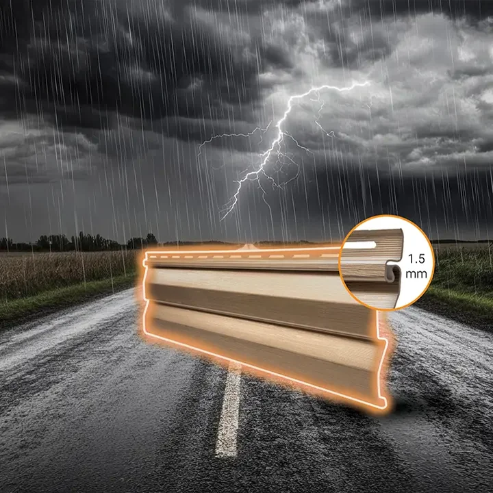 Extra-thick panels (1.5 mm) combined with a specialized locking system that provides resistance to harsh weather, including wind and hail.